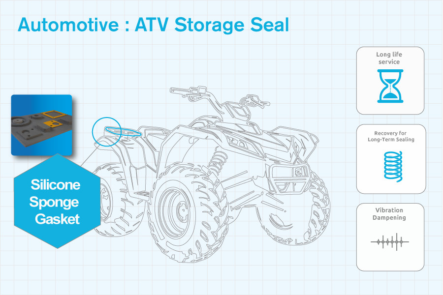 A leading manufacturer of ATV vehicles required a sealing material capable of maintaining long-term performance under dynamic use. The lid of the storage box is frequently opened and closed, placing repeated compression stress on the gasket. Over time, this can lead to material fatigue, compression set, and ultimately seal failure.